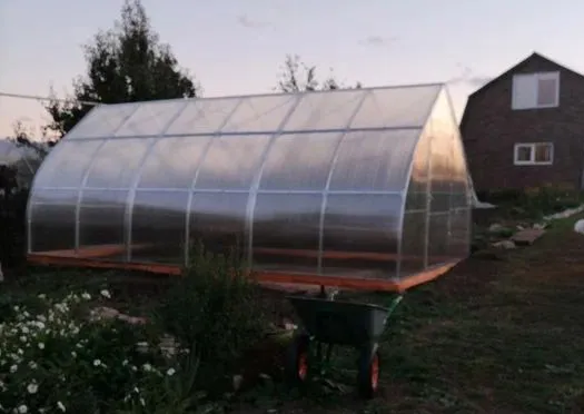 | «Хорошая теплица, каркас на вид прочный, устанавливал на фундамент из бруса, проблем не возникло, правда доставщики опоздали, но предупредили о своей задержке и извинились 100 раз, так что распрощались на доброй ноте.» |